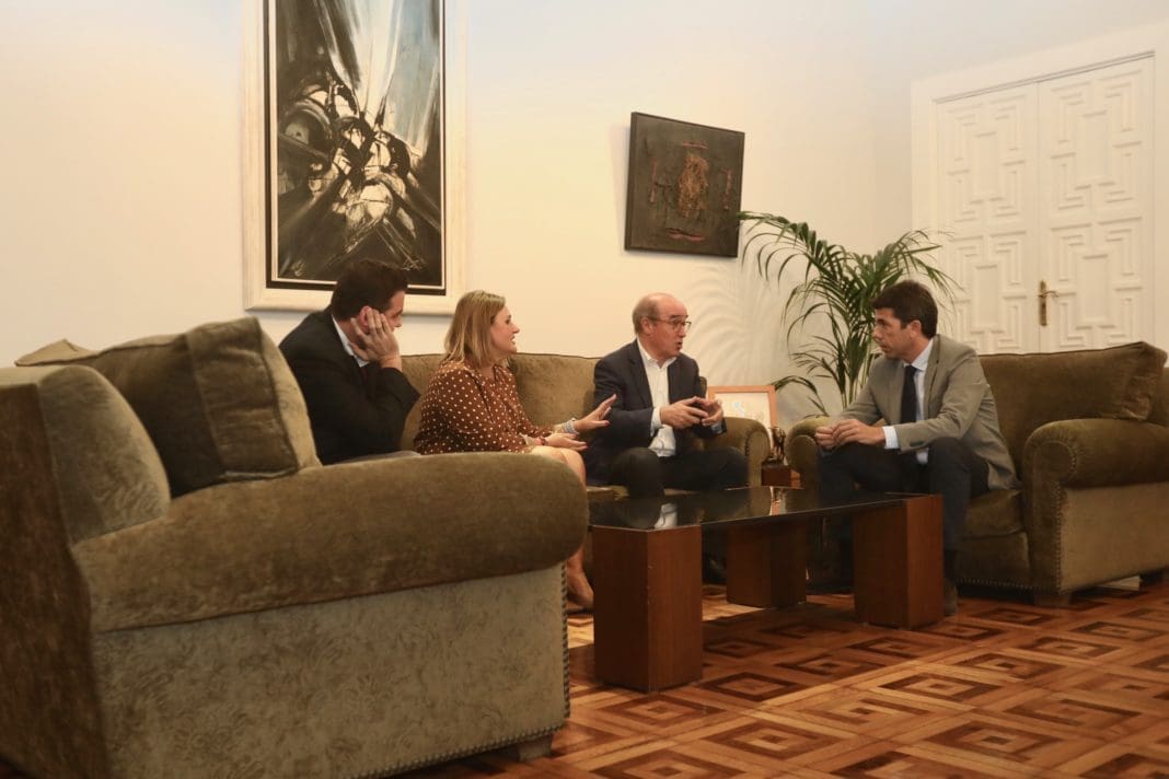 El presidente de la Diputación de Alicante, Carlos Mazón, se ha reunido este mediodía en el Palacio Provincial con el presidente de Hosbec, Toni Mayor, y con la secretaria general de la entidad, Nuria Montes, para abordar la situación turística de la provincia, en un encuentro en el que también ha participado el director del Patronato Costa Blanca, José Mancebo.