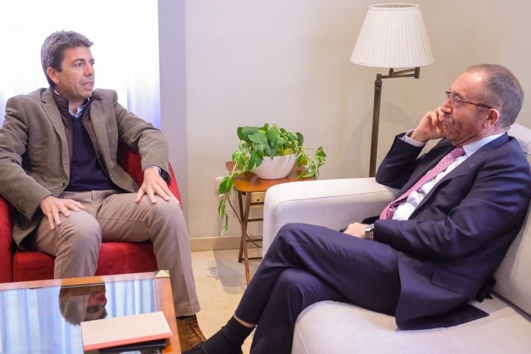 El president de la Generalitat, Carlos Mazón, se ha reunido este miércoles con el director general de Casa Mediterráneo, Andrés Perelló, para abordar los proyectos que tiene en marcha esta institución.