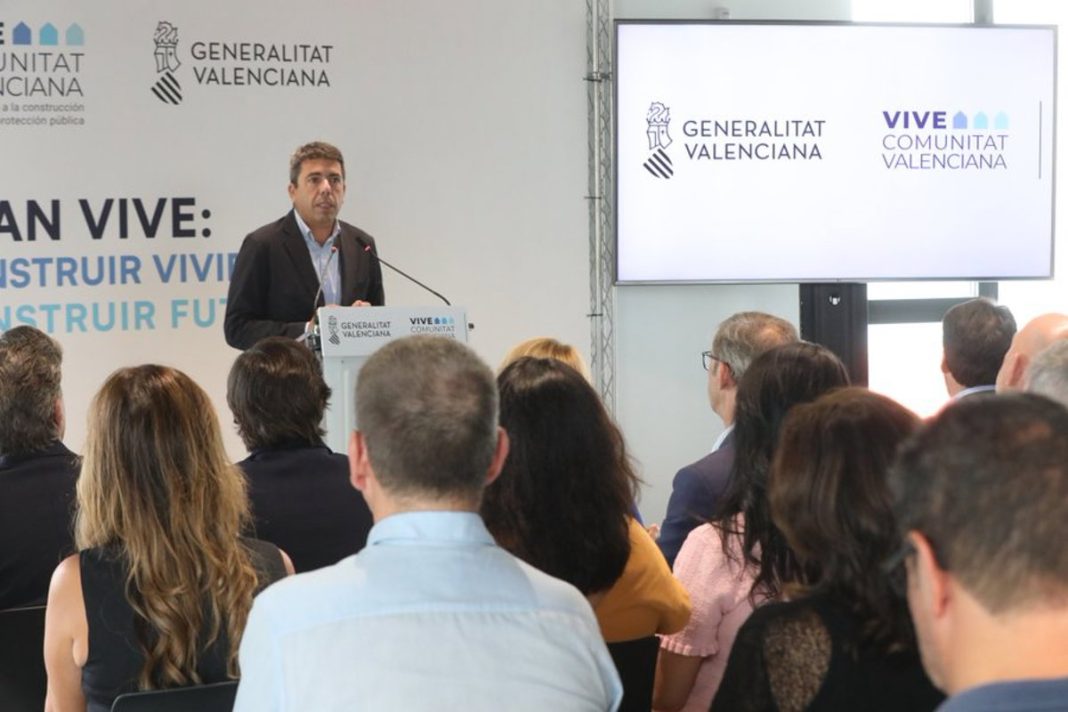 El president de la Generalitat, Carlos Mazón, ha destacado la colaboración público- privada como esencial para desarrollar una política de vivienda «realista y efectiva» con «menos medidas ideológicas» y para alcanzar el objetivo de las 10.000 viviendas de protección pública en los dos próximos años