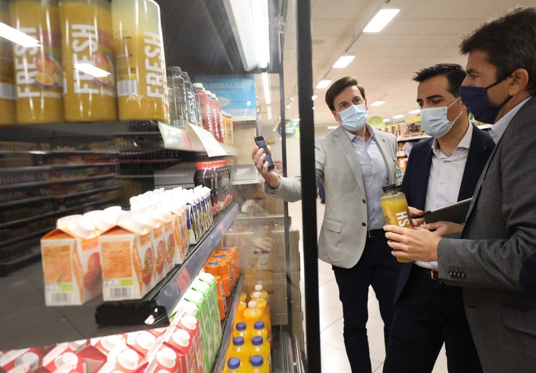 Acompañado por el director provincial de Relaciones Externas de Mercadona, Luis Consuegra, y por el director de Responsabilidad Social Empresarial de la Comunidad Valenciana y la Región de Murcia, Patricio Carpena, Mazón ha recorrido las instalaciones y los diferentes departamentos de exposición y almacenaje del supermercado en los que se ha desarrollado una estrategia de tratamiento y reducción de uso de plásticos