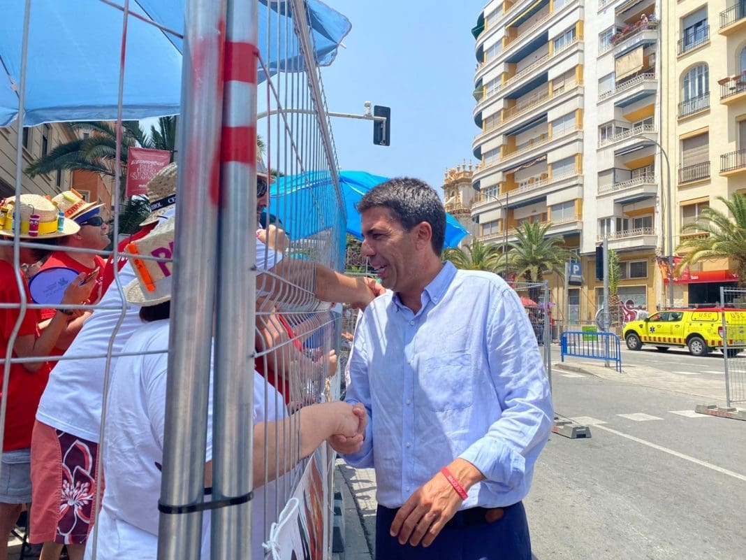 El próximo president de la Generalitat Valenciana, Carlos Mazón, ha presenciado la cuarta sesión del Concurso Oficial de Mascletaes de Hogueras de Alicante donde ha valorado positivamente su reunión ayer martes, 20 de junio, con el president en funciones, Ximo Puig. «Estamos en un momento en que pueden venir inversiones a la Comunitat Valenciana y por tanto tenemos que dar la máxima garantía del máximo trabajo conjunto, un pacto por lo mejor para la Comunitat Valenciana».