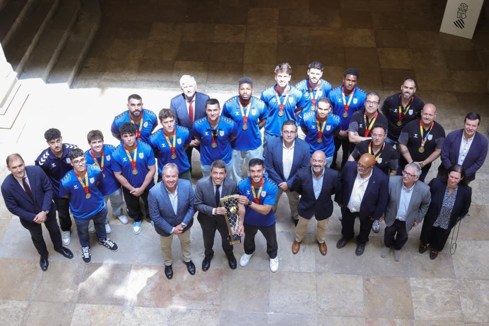 El president de la Generalitat, Carlos Mazón, ha recibido al Horneo EON Alicante después de proclamarse campeón de la División de Honor Plata Masculina y conseguir, por primera vez, el ascenso a la liga Asobal.