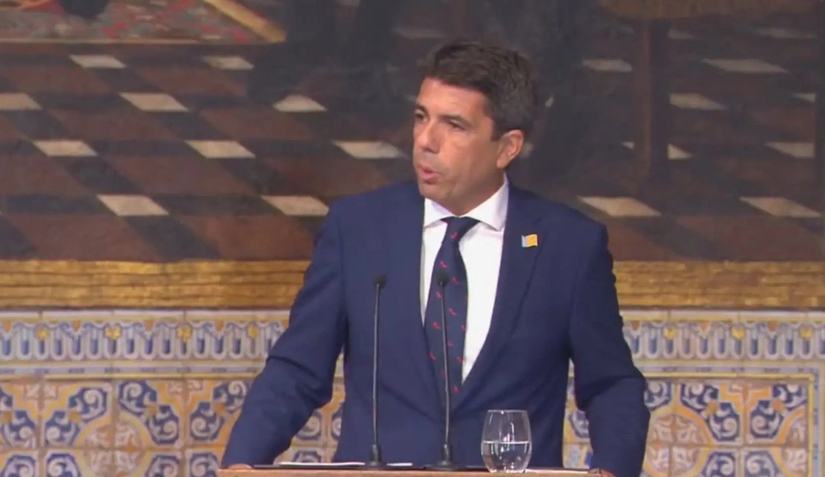 El president de la Generalitat, Carlos Mazón, ha reivindicado una financiación justa para la Comunitat Valenciana, atajar el problema del agua en Alicante y acometer la ampliación del puerto de Valencia en su primer discurso como jefe del Consell. Una intervención que ha tenido lugar esta mañana en el Palau de la Generalitat con motivo de la celebración del 9 d’Octubre.