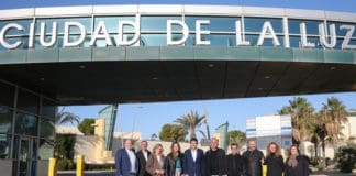 Mazón visita el rodaje de la nueva producción de Columbia Pictures en la Ciudad de la Luz