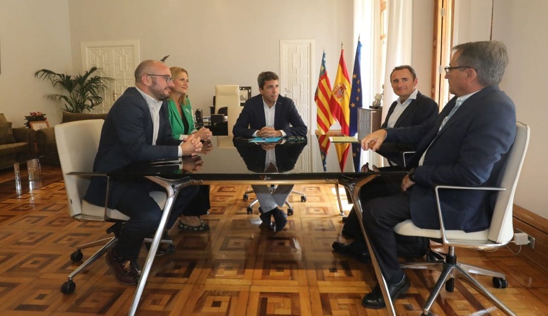 El presidente de la Diputación de Alicante, Carlos Mazón, se ha reunido esta mañana con la vicepresidenta y el director general del Cercle Agroalimentari de la Comunitat Valenciana, Leonor Saiz y Manuel Lainez, para recoger las inquietudes del sector y trasladarles el respaldo de la institución provincial “a esta industria estratégica para nuestro territorio” que genera un volumen de negocio de más de 30.000 millones de euros en el conjunto de la región.