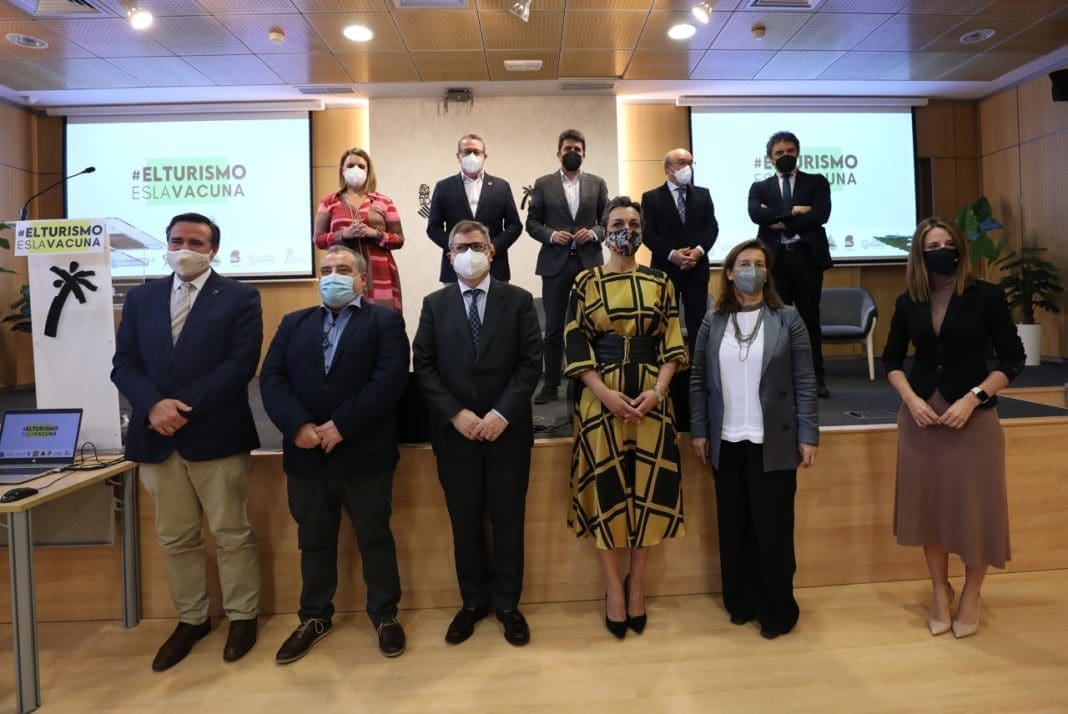 El acto, organizado por Hosbec -Asociación Empresarial Hostelera de Benidorm, Costa Blanca y Comunidad Valenciana- bajo el mensaje #ELTURISMOESLAVACUNA, ha contado con la presencia del secretario autonómico de Turisme, Francesc Colomer, el alcalde de Benidorm, Toni Pérez, el presidente de Hosbec, Toni Mayor, y la secretaria general de la entidad, Nuria Montes.