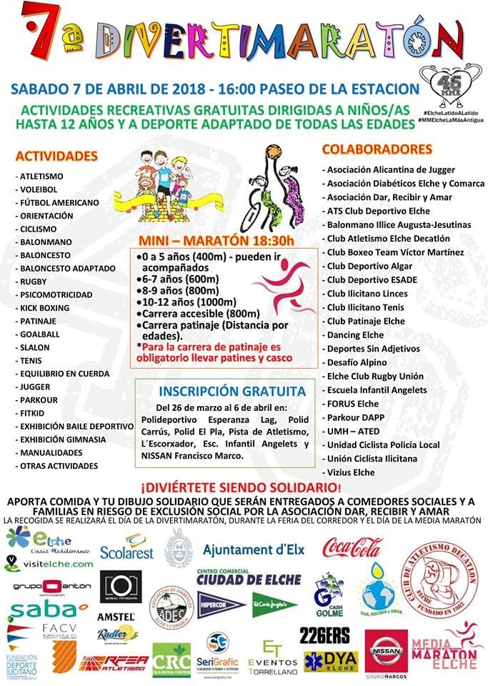 La campaña solidaria DREAM pretende que sean muchos los ilicitanos que se animen a llevar alimentos de primera necesidad, comida para bebés, así como productos de higiene y limpieza a la citada asociación. Además, la idea de difundirla en los medios de comunicación, es conseguir que los niños vuelvan a implicarse un años más con el deporte y la solidaridad, y es que durante la Divertimaratón se premiará a los más pequeños que lleven un kilo de comida y un dibujo solidario para ayudar a las familias.