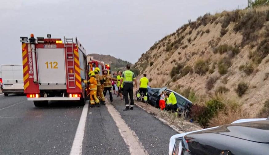 Según fuentes del Consorcio Provincial de Bomberos sobre las 8:10 horas, se ha producido el vuelco de un coche tras chocar contra el arcén en la AP-7, a la altura del km.664 en el término municipal de Villajoyosa.