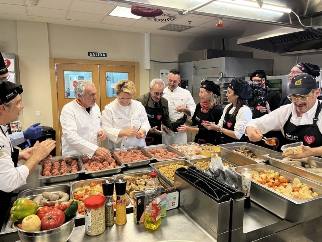 Durante el día de hoy, en su elaboración han participado chefs con Estrella Michelin como Cristina Figueira, Ferdinando Bernardi y el maestro pastelero Paco Torreblanca, además de empresarios miembros del Comité Ejecutivo y del Pleno de la Cámara de Alicante, junto a los voluntarios de AGS, los conocidos como #HéroesConDelantal.