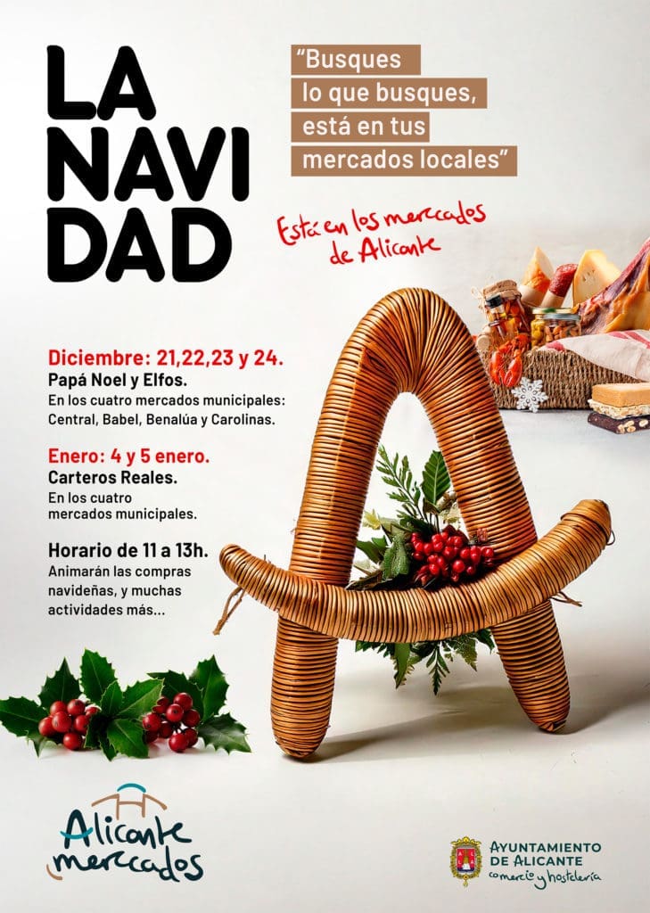 El Ayuntamiento a su vez ha organizado en los mercados unas jornadas de dinamización comercial con visitas con Papá Noel y los Elfos, el 21,22, 23 y 24 en los cuatro mercados Central, Babel, Benalúa y Carolina. Así como también recibirán la visita de las carteras reales, el 4 y 5 de enero en todos los mercados para que los más pequeños lleven las cartas y sus deseos. Todas estas actividades serán de 11 a 13 horas y animarán las compras en estas señaladas fechas.