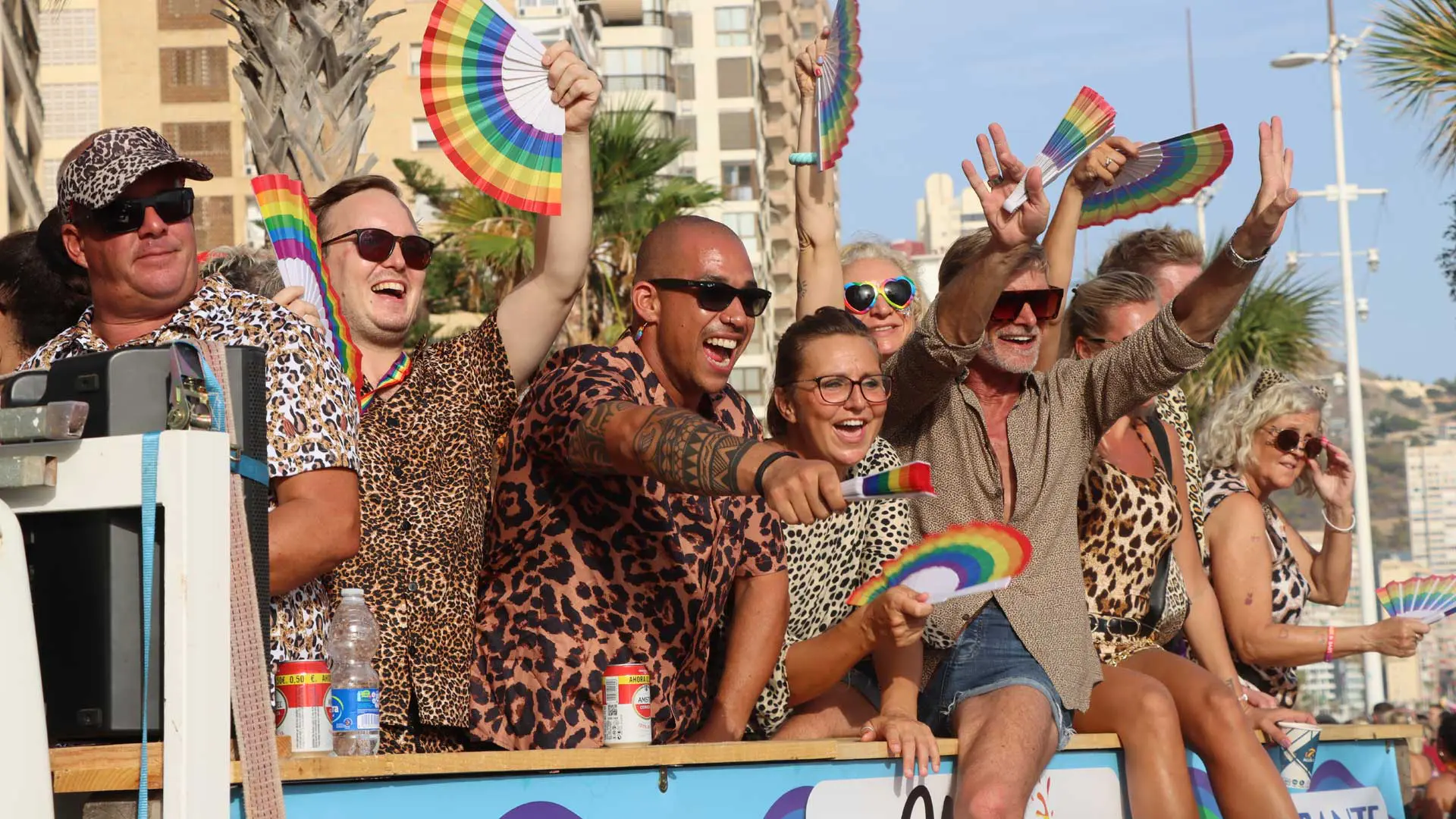 Banderas arcoíris, disfraces, carrozas, camiones y mucha gente andando y bailando han mostrado la cara más diversa y acogedora de Benidorm, un referente europeo para el turismo LGBTIQ+.
