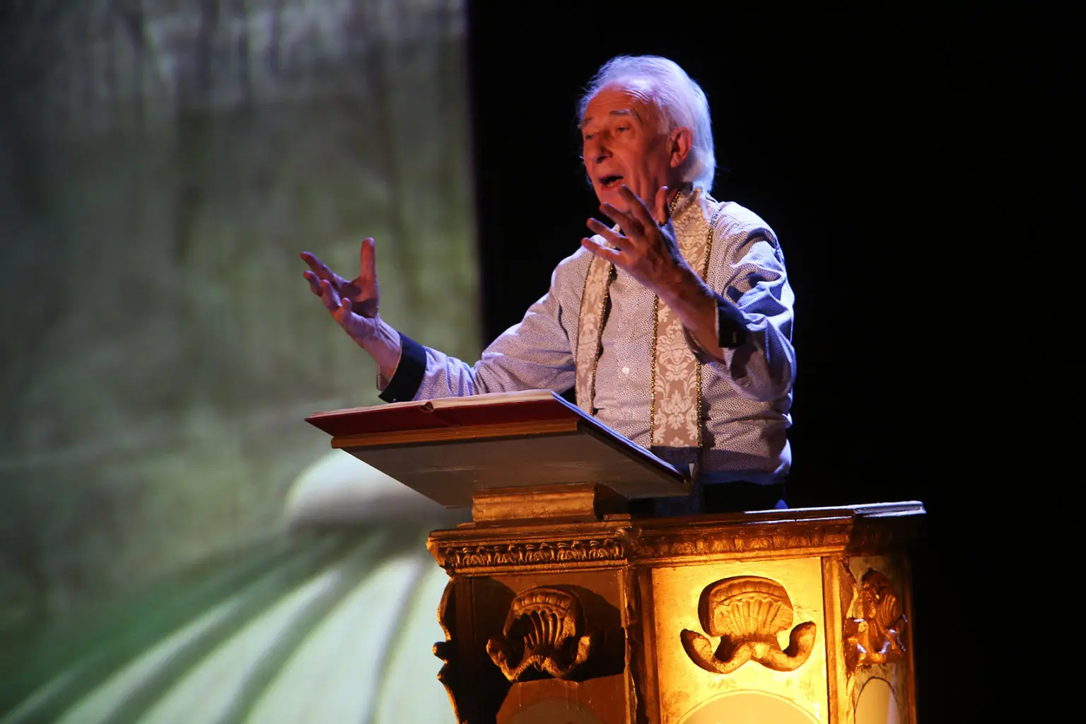 Ayer tuvo lugar la obra de teatro “El sermón del bufón” con Albert Boadella en el Gran Teatro de Elche. El montaje es un relato directo y real de un artista expresando sus pensamientos y experiencias sobre situaciones auténticas de su propia vida. Albert Boadella, no perdió en ningún momento el sentido del humor y durante toda la representación, desdobló su personalidad entre el niño y el viejo artista, entre el indómito y el cívico, entre el histriónico y el reflexivo.