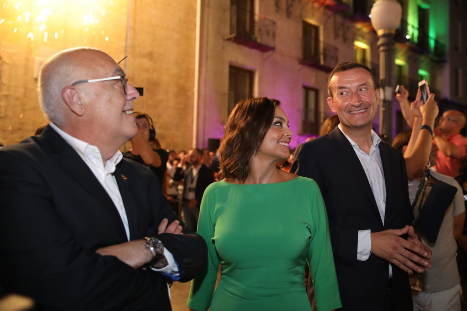 Mónica Carrillo Martínez, presentadora de los informativos de Antena 3 junto a Matías Prats, acudió ayer a Elche a dar el pregón que da inicio a las fiestas de su localidad natal. Ataviada con un vestido hasta las rodillas de color verde, que ya ha lucido en otras ocasiones, con su pelo corto hasta los hombros, una sonrisa de oreja a oreja y un poco nerviosa, a pesar de estar acostumbrada a los focos de las cámaras, ayer, la noticia era ella. Mónica Carrillo se entregó en cuerpo y alma a su ciudad, arropada de sus padres que estuvieron cerca de la presentadora y del millar de asistentes y festeros que estuvieron en la plaza esperando sus palabras. En su pregón agradeció la insistencia del alcalde porque fuese pregonera, disculpándose de no haberlo sido otros años por motivos de agenda y rindió un homenaje al reciente ascenso del Elche C.F. También recordó algún aspecto de su infancia cuando paseaba por la Corredora hasta ir a los desparecidos recreativos Dum Dum, la nostalgia de la luz mediterránea “que podría protagonizar cualquier cuadro de Sorolla”. Una Mónica entusiasta describía la de veces que cruzó el río Vinalopó para ir al colegio público Candalix, atajando por el Parque Municipal, las carreras para coger el autobús que la llevarían hasta el instituto número 4, que ahora se llama Montserrat Roig. Es evidente que el pregón tenía tintes nostálgicos de su ciudad, su entorno y sus gentes.