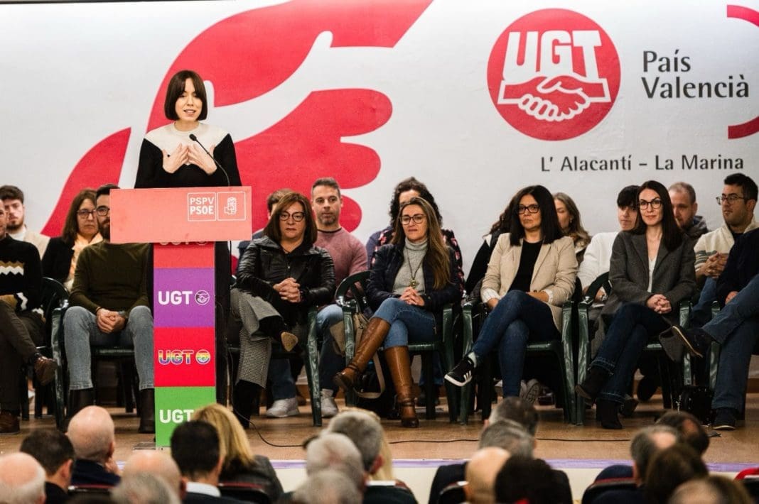 Morant, única aspirante a la secretaria general del partido, ha participado este domingo en un acto en la sede de UGT en Alicante, junto al secretario general del PSPV-PSOE de la provincia, Alejandro Soler, y al secretario general de la ciudad, Miguel Millana.