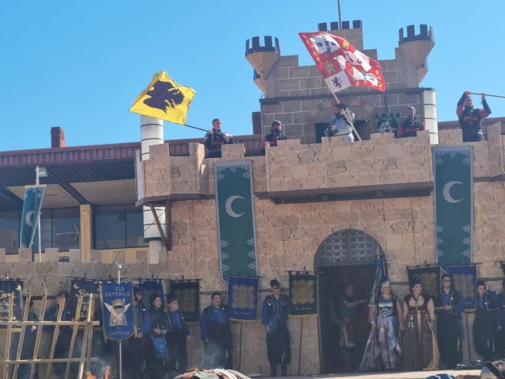 Rostros ensangrentados, lucha cuerpo a cuerpo y a cañonazos, ariete como mejor arma de asedio derrumbando las puertas del castillo, fuego por doquier y arcabucería intensa han dado forma, una vez más, a un acto que quizás sea de los más deslumbrantes de cuantos integran el intenso programa al que han dado forma la Junta Festera de Moros y Cristianos que preside Marga Sebastià y la concejalía de Fiestas y Tradiciones que dirige Cristian Palomares.