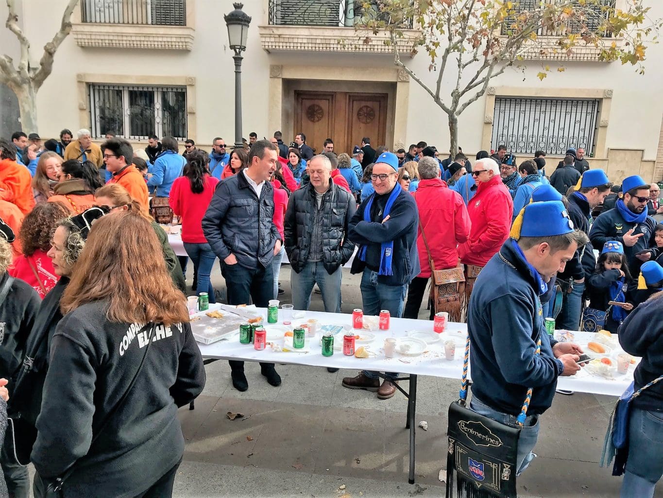 La Asociación de Moros y Cristianos de Elche entregó esta mañana los trofeos correspondientes a los distintos campeonatos que organiza con motivo del Mig Any 2018 durante un almuerzo festero que tuvo lugar en la plaza del Raval y que contó con la presencia del alcalde, Carlos González, y del concejal de Aperturas, Carlos Sánchez.