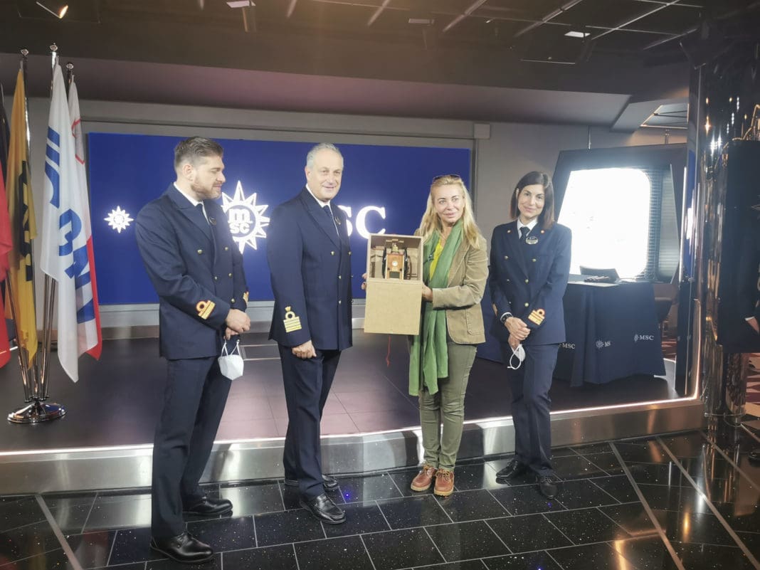 En esta primera escala se ha celebrado el tradicional intercambio de metopas entre el Capitán del barco, Francesco Saverio Veniero, y la Autoridad Portuaria de Alicante, representada por Mónica Bautista, su Directora Comercial; y en el que han estado presentes el Gerente de la Terminal, Francesco Balbi,  representantes de la naviera MSC Cruceros y miembros de la tripulación.