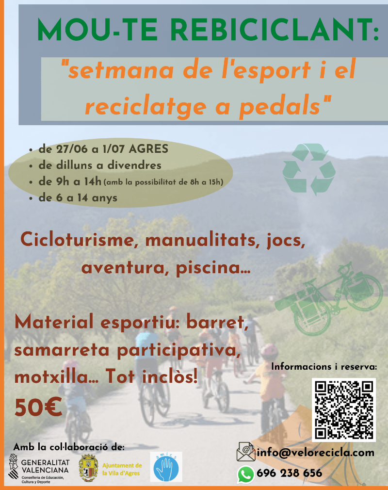 Velorecicla organiza el Campus “Muévete Rebiciclando: semana del deporte y el reciclaje a pedales”, en varias localidades de la comarca del Comtat para niños entre 6 y 14 años.