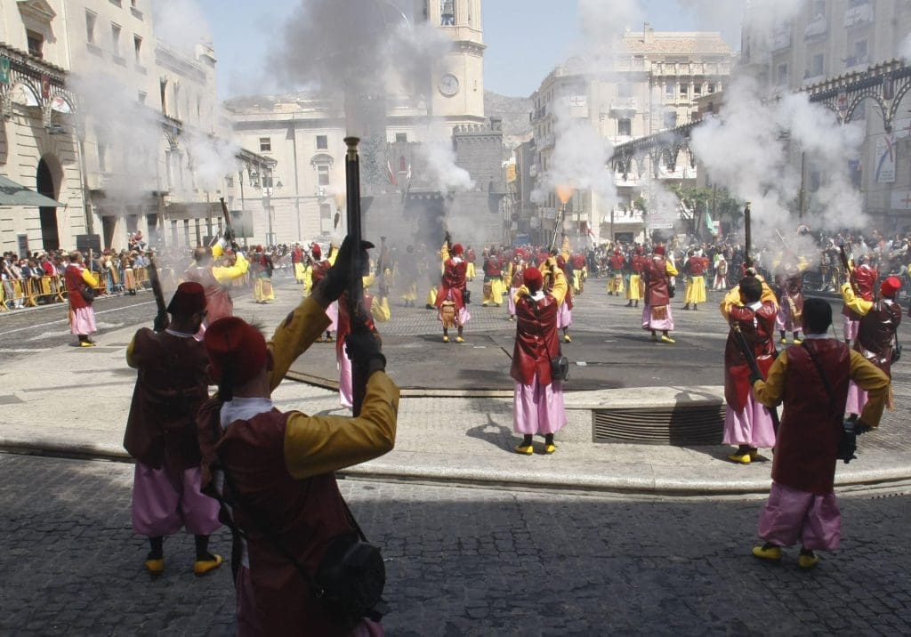Dentro de los Moros y Cristianos alcoyanos, entre este sábado y el lunes, esta novedad se produce en una jornada dedicada a las Entradas con la presencia de alrededor de 13.000 personas en los desfiles, por la mañana el del ejército de la cruz, y por la tarde el de las huestes mahometanas.