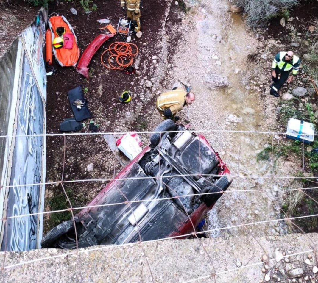 Segun fuentes del Consorcio Provincial, sobre las 7:24 horas se ha producido un accidente de tráfico por salida de la vía de un coche que cae por un desnivel de varios metros quedando el coche volcado boca abajo en la AP 7 Altea -Benidorm.