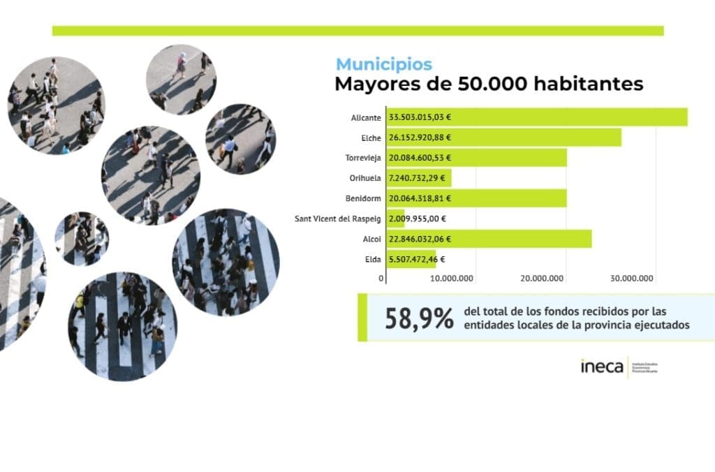 Así, constatan que el 58,87% de los fondos europeos Next Generation distribuidos en la provincia de Alicante se han ejecutado en poblaciones como Alicante, Elche o Alcoy, superiores a los 50.000 habitantes. Estos tres junto a Torrevieja han sumado 137,4 millones de euros. Sin embargo, municipios, especialmente de 5.000 a 20.000 habitantes han tenido más dificultades para acceder a estas ayudas.