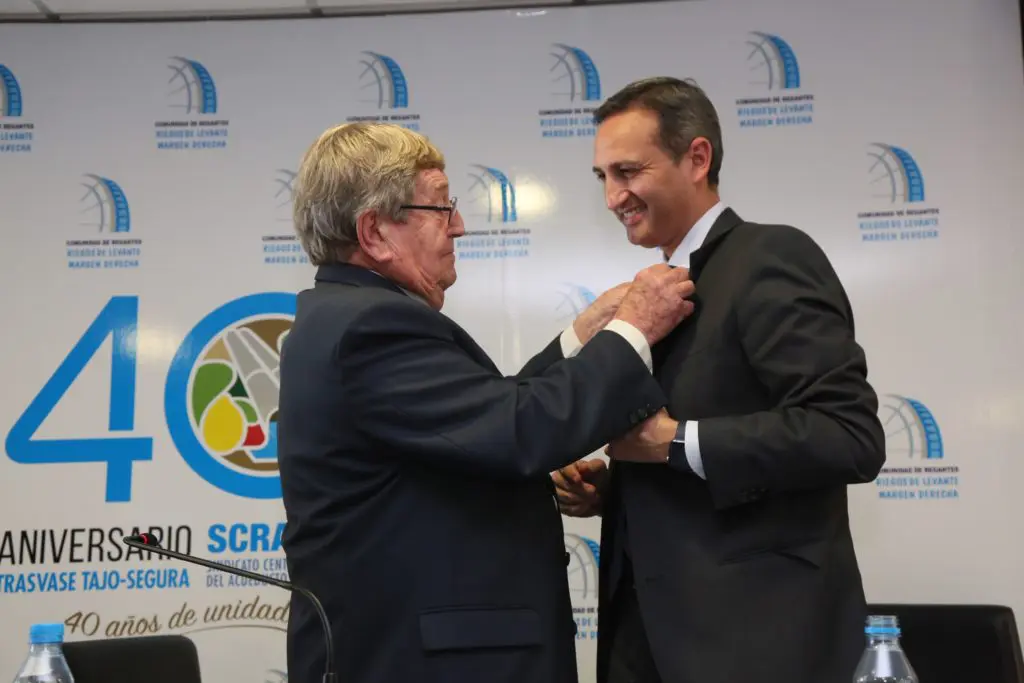 Sánchez ha lanzado esta invitación durante el acto conmemorativo del 40 aniversario del trasvase Tajo-Segura que se ha celebrado en la sede la Comunidad de Regantes Riegos de Levante Margen Derecho, entidad que ha querido reconocer el apoyo del presidente de la Diputación de Alicante a los regantes entregándole una insignia.