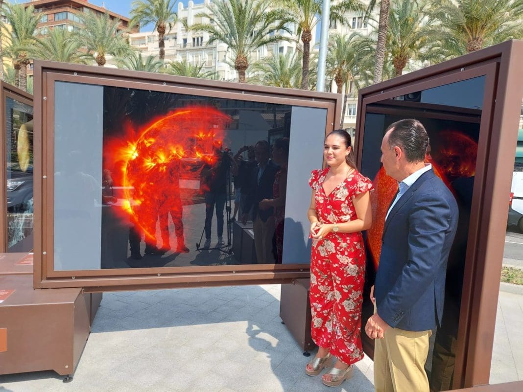 Alicante se convierte desde este jueves y hasta el lunes 24 de julio en un museo a cielo abierto con la exposición ‘Otros mundos. Viaje por el sistema solar’, que ha inaugurado la concejala de Cultura, Nayma Beldjilali, junto con el director de Área de Negocio de CaixaBank en Alicante, José Antonio Sendra; y la delegada territorial de la Fundación ”la Caixa” en la Comunidad Valenciana, Lourdes Toribio.