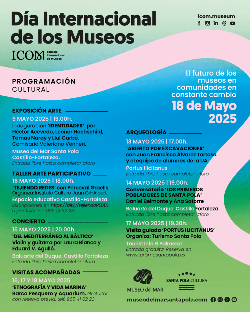 El 18 de mayo se celebra el Día Internacional de los Museos y, para conmemorar esta efemérides, el Museo del Mar de Santa Pola ha diseñado una programación cultural intensa y muy variada para este mes de mayo, con el objetivo de seguir creciendo como la segunda institución museográfica de la provincia en número de visitas, tan solo superada por el MARQ.