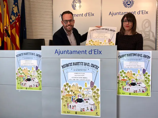 La concejala de Cultura, Patricia Macià, y el concejal de Promoción Económica, Héctor Díez, han presentaron ayer la campaña “Sábados divertidos en el centro” con la que el Ayuntamiento pretende dar un paso más en la revitalización del centro histórico de Elche. La Glorieta será el punto de encuentro de estas actividades que se van a desarrollar los días 7, 14 y 28 de abril; 5, 12 y 19 de mayo y 9 y 16 de junio. El horario será de 12 a 21horas.