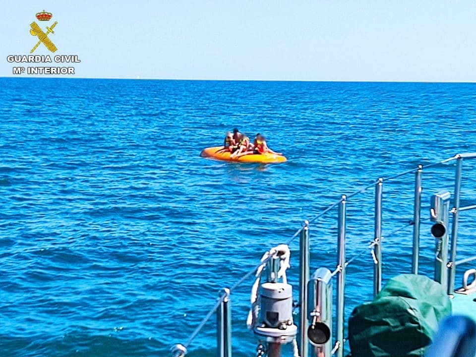 La embarcación se encontraba volcada y medio hundida, quedando a la vista una pequeña parte, sobre la cual los agentes hallaron a dos hombres y tres mujeres, todos ellos mayores de edad, de nacionalidad española y miembros de una misma familia que se encontraron agarrados a la barca.