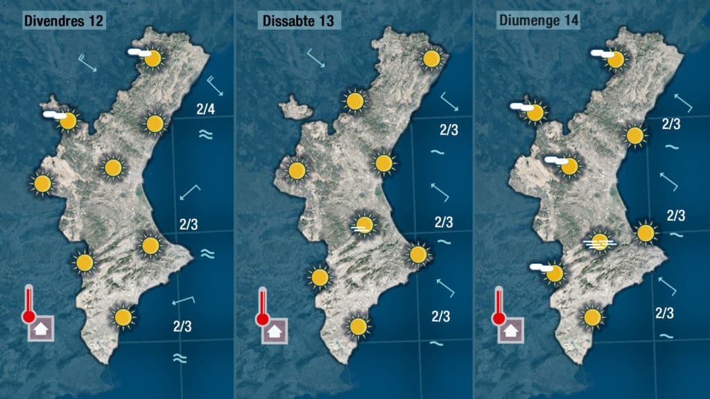 Y tanto viernes como el fin de semana, el tiempo volverá a ser estable en toda la Comunitat y las temperaturas subirán día tras día y el frío también nos dirá adiós.