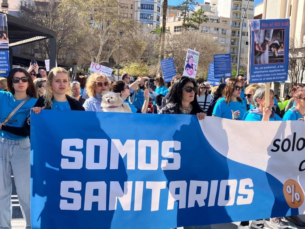 Alrededor de 200 profesionales veterinarios se han concentrado este miércoles en la plaza de la Montañeta para protestar por la regulación del Real Decreto 666/2023. Es una nueva jornada de movilización en todas las provincias españolas que se ha acompañado de cierre parciales entre las 10 y las 12 horas.