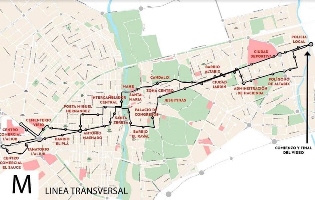 Este martes ha entrado en funcionamiento la nueva línea M del servicio de autobús urbano, que va a dar servicio a los ciudadanos de forma transversal y que conectará la ciudad de este a oeste con el objetivo de vincular los barrios de Altabix, Nuevo Altabix, San Antón, Ciudad Jardín, Zona Centro, El Plá, Santa Teresa, Cementerio Viejo y Centros Comerciales.