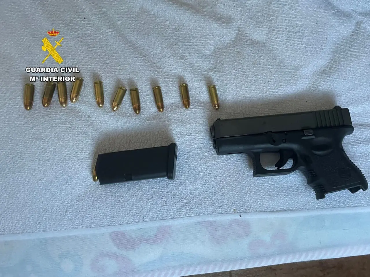 También se ha intervenido la infraestructura empleada en las plantaciones de marihuana, máquinas peladoras y generadores de ozono; básculas de precisión y los materiales para el corte y preparación de las dosis de los distintos tipos de sustancias; numerosa documentación que implica a los miembros de la trama; 13.000 euros procedentes de la actividad criminal; y un arma de fuego corta del calibre 9 milímetros municionada y montada, dispuesta para disparar, que fue localizada en la mesilla de noche del dormitorio de uno de los detenidos. La pistola intervenida es de curso ilegal y ha sido remitida al Servicio de Criminalística de la Guardia Civil para su análisis por si estuviera implicada en otros delitos. También han sido intervenidos los terminales móviles y vehículos empleados para la comisión de los delitos.