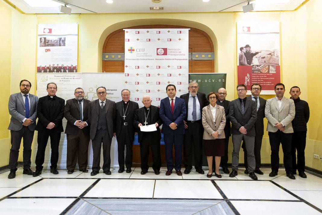 En el acto han participado junto al cardenal Cañizares, el rector de la Universidad Católica de Valencia, Jose Manuel Pagán; el director Proyección Social y Cultural de la Universidad CEU-UCH, Vicente Navarro Luján; la secretaria autonómica de Escuelas Católica, Vicente Rodríguez y el presidente de FCAPA, Vicente Morro, así como los delegados de educación de las diócesis de la Comunidad Valenciana y representantes de las diferentes asociaciones y entidades firmantes del manifiesto.