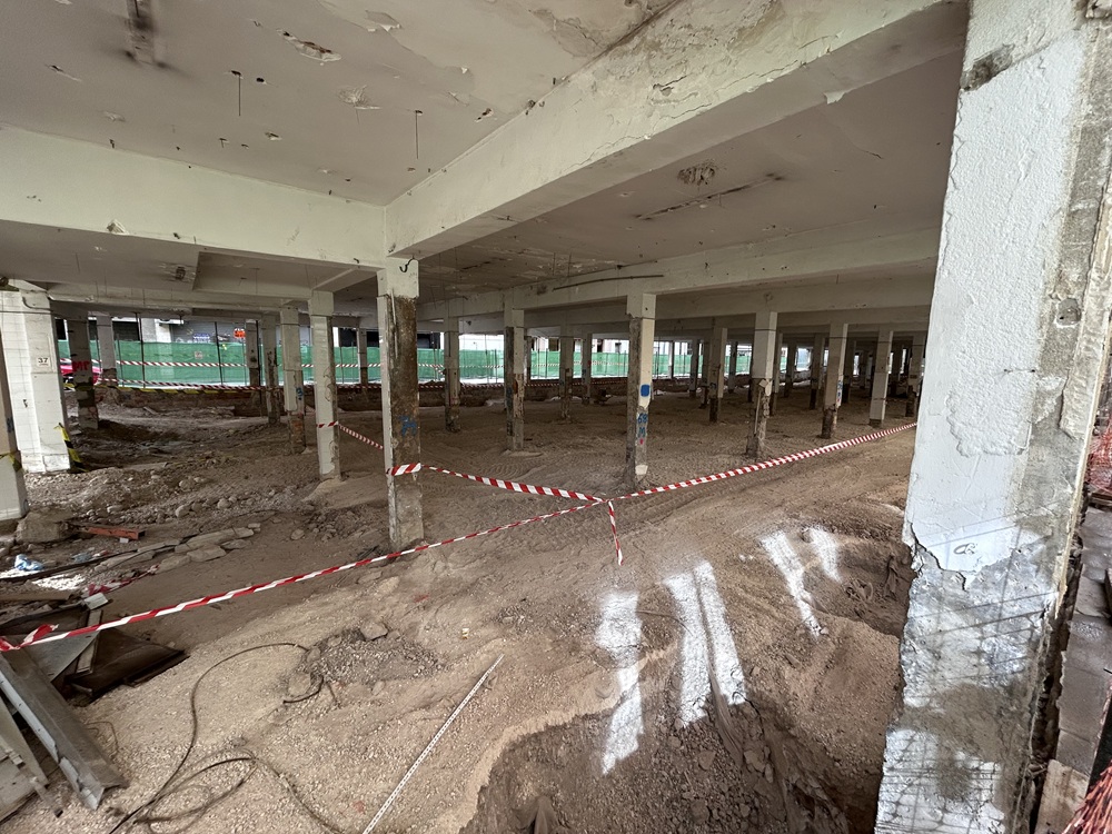 Las obras en el Mercado Central de Elche avanzan con el refuerzo de pilares para demoler el forjado intermedio