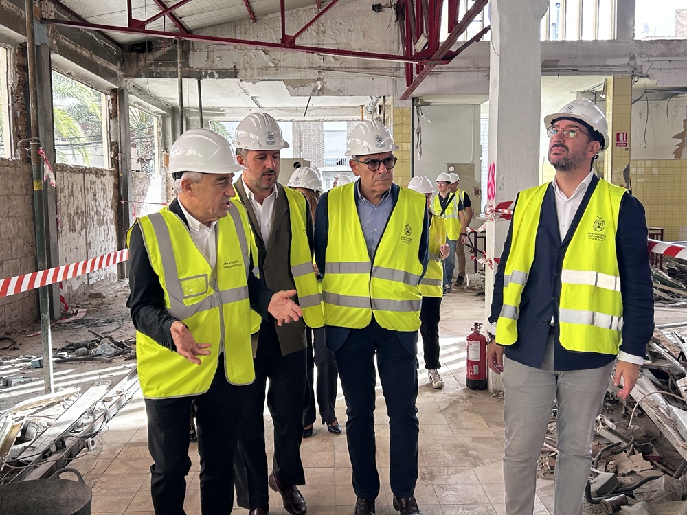 El alcalde Pablo Ruz ha visitado esta mañana el estado de las obras acompañado del edil de Estrategia Municipal, Francisco Soler; el edil de Espacios Públicos, Claudio Guilabert y la edil de Mercados, Loli Serna junto al arquitecto responsable José María Tomás Llavador.