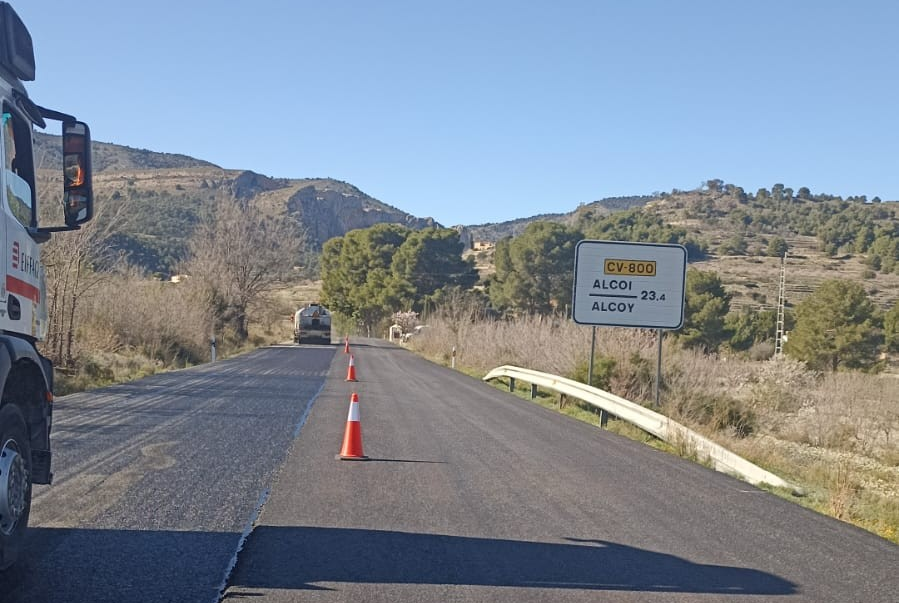 La Generalitat avanza en los trabajos de mejora de la seguridad vial en la carretera CV-800, en el término de Jijona, y afronta ya la fase final de una actuación que permitirá completar en mayo la renovación del aglomerado de esta vía de montaña.