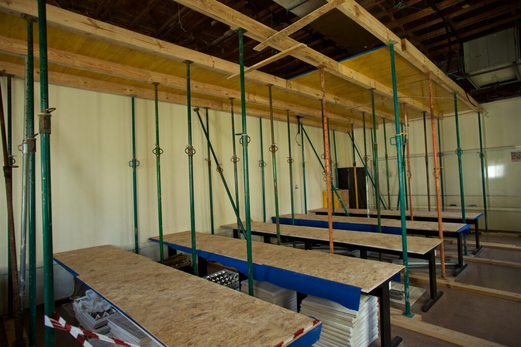 Durante las obras se han adoptado medidas específicas para proteger las bancadas y los equipos de los laboratorios, con el fin de evitar daños derivados de los trabajos y garantizar la conservación de los espacios interiores.