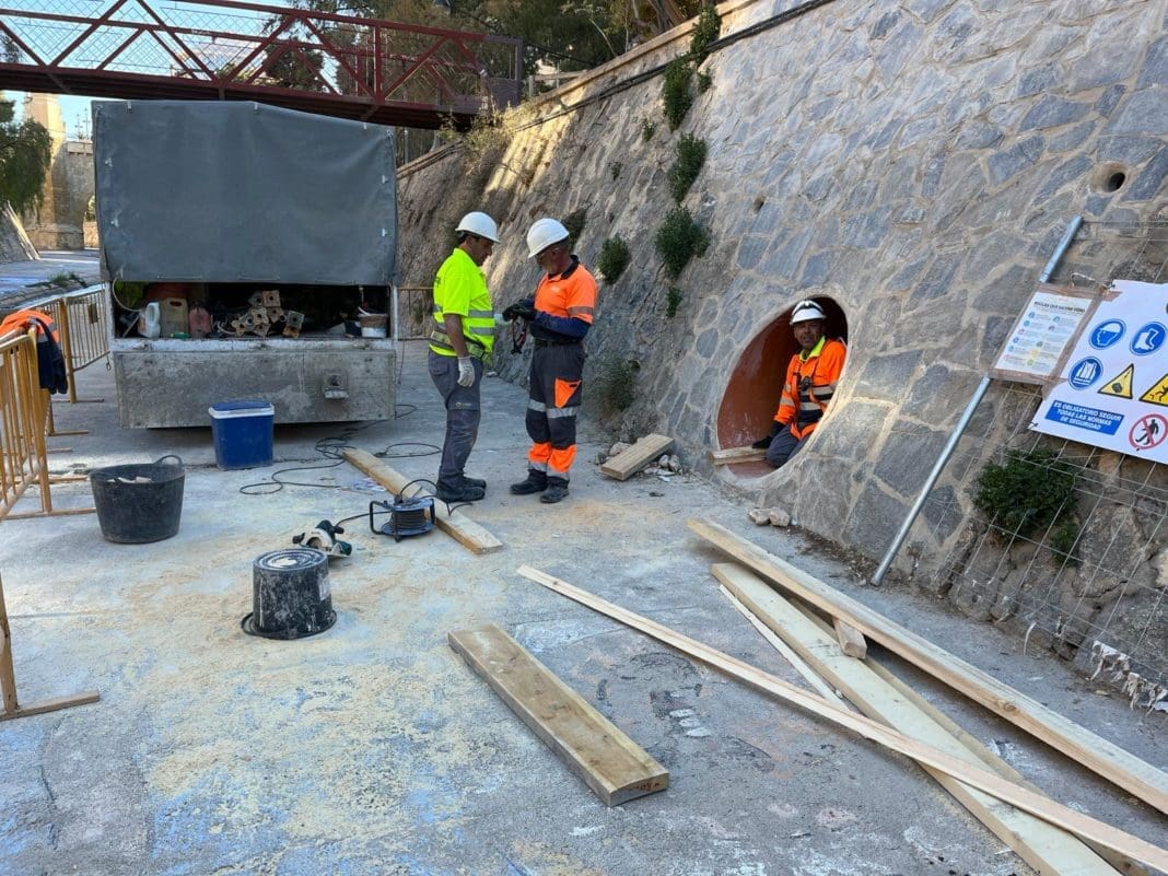 Aigües d’Elx ha retomado esta semana las obras de reparación de la conducción de aguas pluviales que se encuentra bajo las instalaciones de la Fundación Salud Infantil, en la ladera del río. Trabajos que se unen a los que ya se realizaron para solucionar el problema de filtraciones generado el pasado verano y que obligó a desalojar el centro por posible riesgo de derrumbe.
