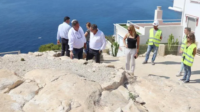 El alcalde, Toni Pérez, y los concejales en funciones de Patrimonio Histórico y Espacio Público, Ana Pellicer y José Ramón González de Zárate, han visitado hoy el yacimiento para comprobar sobre el terreno cómo avanza este proyecto, incluido en el Plan de Sostenibilidad Turística ‘Benidorm DTI + Seguro’ y que supone una inversión de 400.994,38 euros.