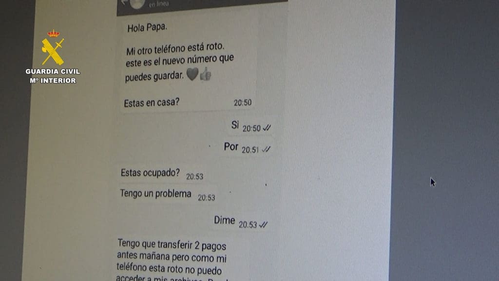 “Hola mamá. Mi móvil está roto. Tengo un número temporal. No puedo llamarte. Puedes enviarme un SMS a través de WhatsApp al número 656…” es el mensaje que recibían las víctimas en sus móviles del presunto estafador haciéndose pasar por su hijo. De esta manera convencía que tenía problemas económicos y necesitaba dinero urgentemente. La víctima realizaba una o varias transferencias al que creía que era su hijo y más tarde descubría que había sido estafada.