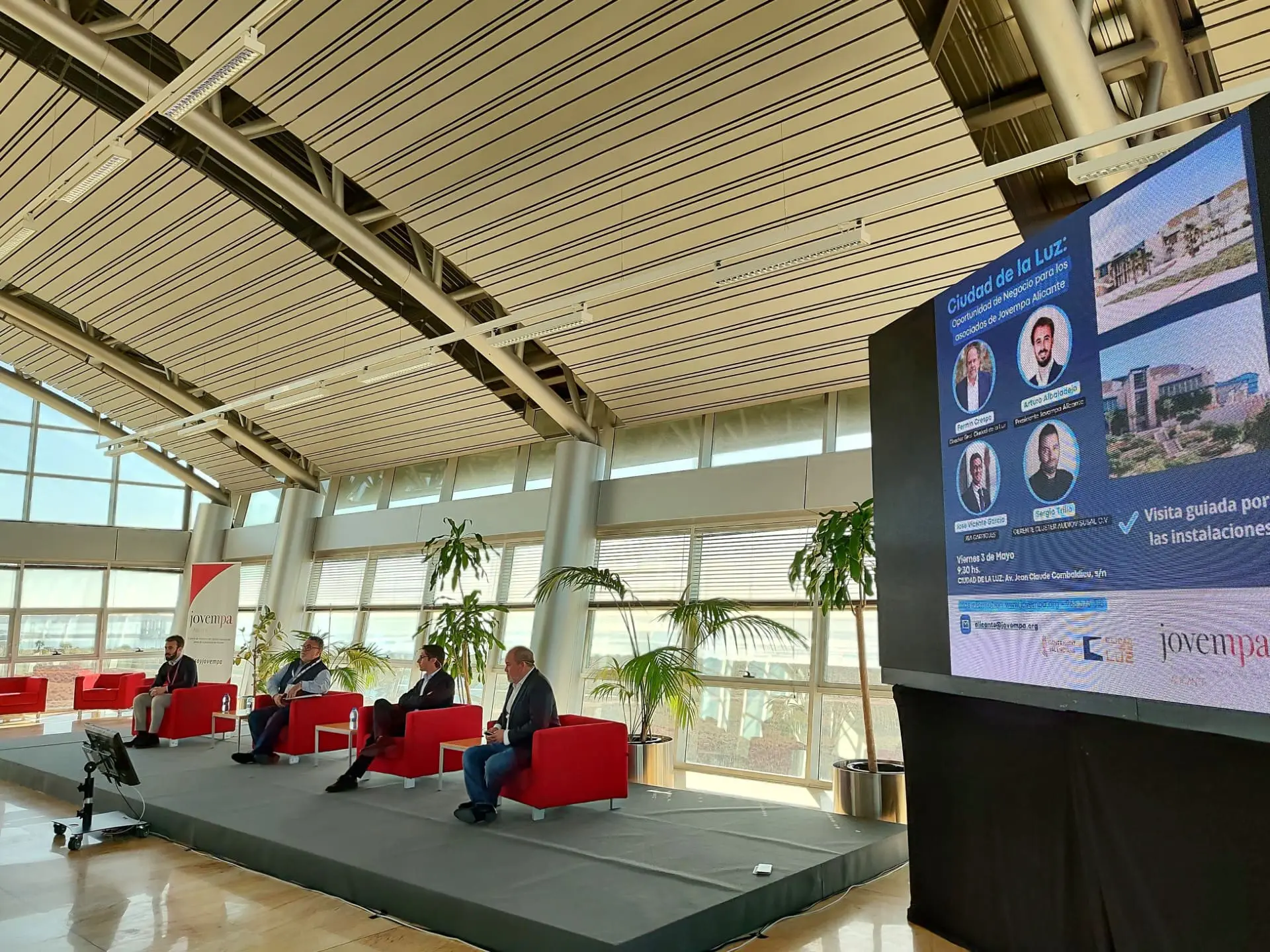 El presidente de Jovempa Alicante, Arturo Albaladejo, ha dado la bienvenida a los presentes y ha agradecido esta colaboración con Ciudad de la Luz en un momento en el que los estudios han retomado su pleno funcionamiento y, con ello, se están perfilando como motor económico fundamental a tener en cuenta por los jóvenes empresarios y emprendedores de la provincia de todo tipo de actividades profesionales.