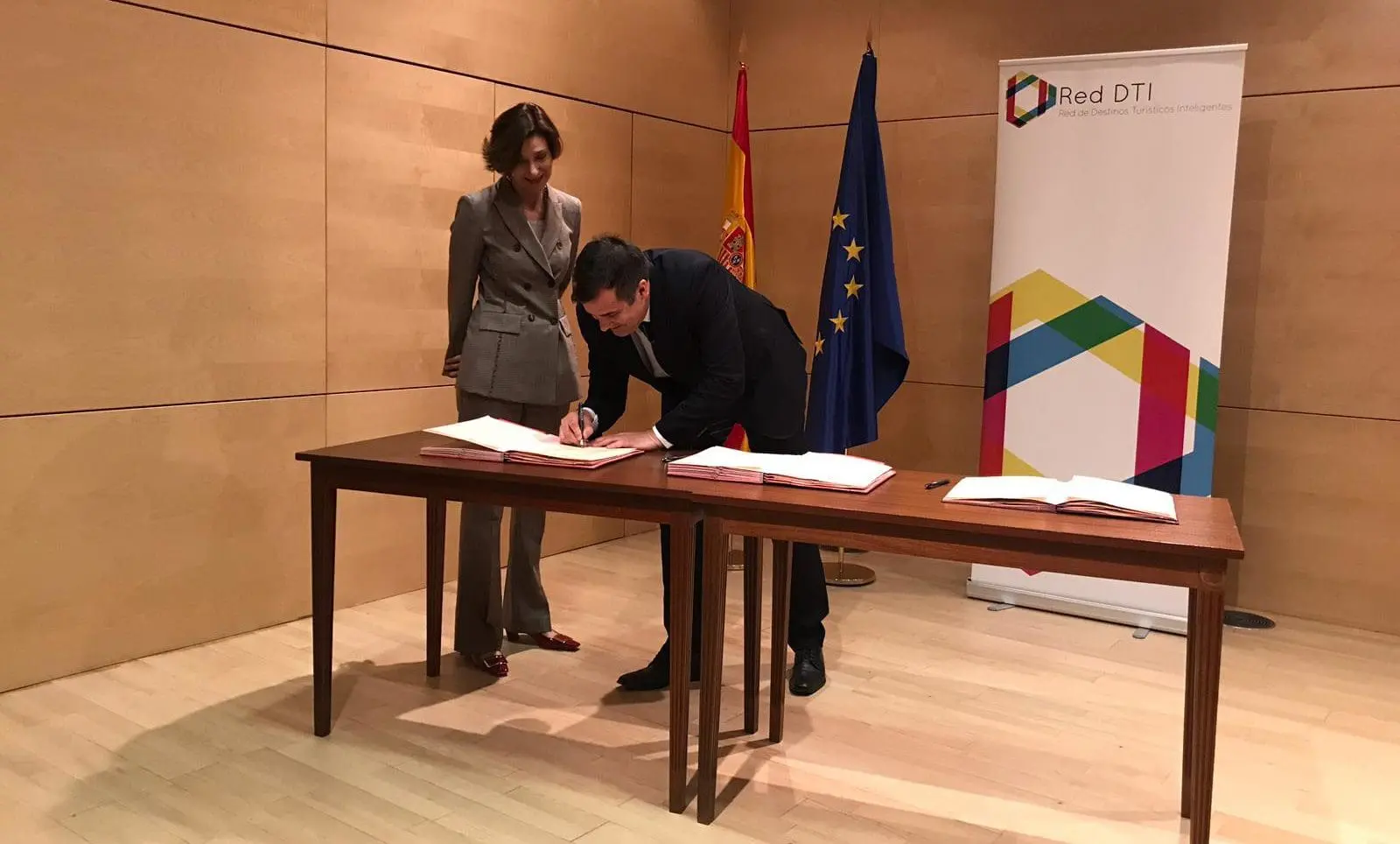 El concejal de Modernización de la Administración del Ayuntamiento de Orihuela, Miguel Ángel Fernández, asistió ayer a la firma del protocolo de la Red de Destinos Turísticos Inteligentes, a la que se han adherido cerca de 70 destinos españoles, entre los que se encuentra Orihuela. El acto estuvo presidido por la ministra de Industria, Comercio y Turismo, Reyes Maroto.