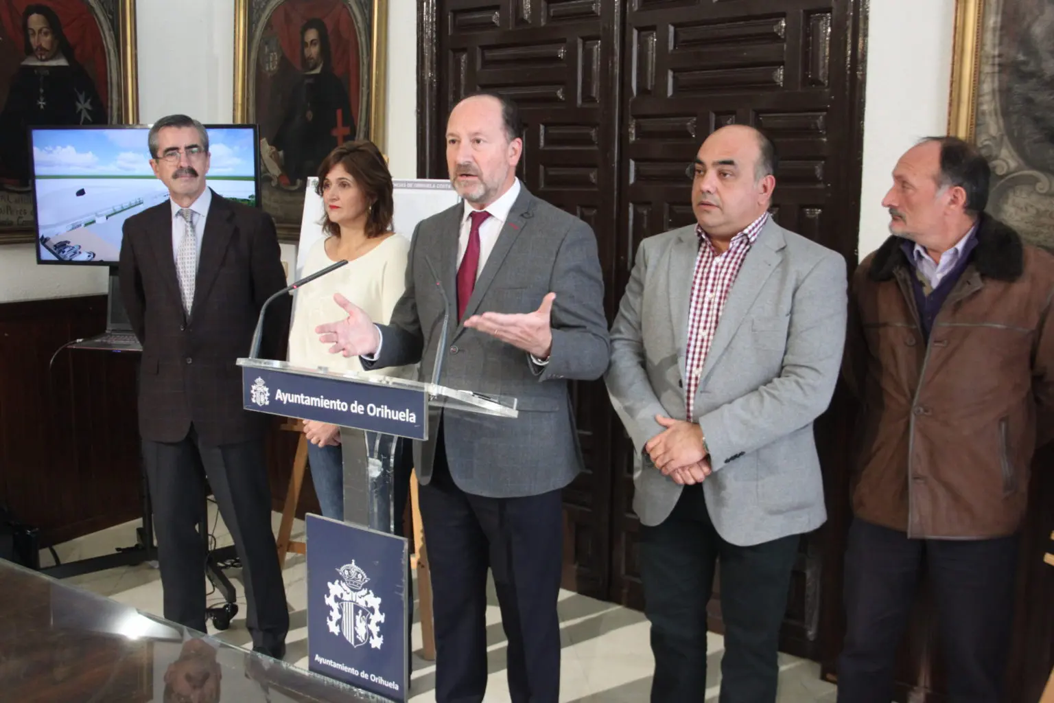 El alcalde de Orihuela, Emilio Bascuñana, acompañado por el concejal de Emergencias, Víctor Valverde, y la edil de Seguridad, Mariola Rocamora, presentó este miércoles el proyecto que ha realizado el Ayuntamiento oriolano para el Centro de Emergencias de Orihuela Costa, ante la presencia del director de Emergencias José Mª Ángel Batalla, y la subdirectora de Seguridad, Aurora Valero.