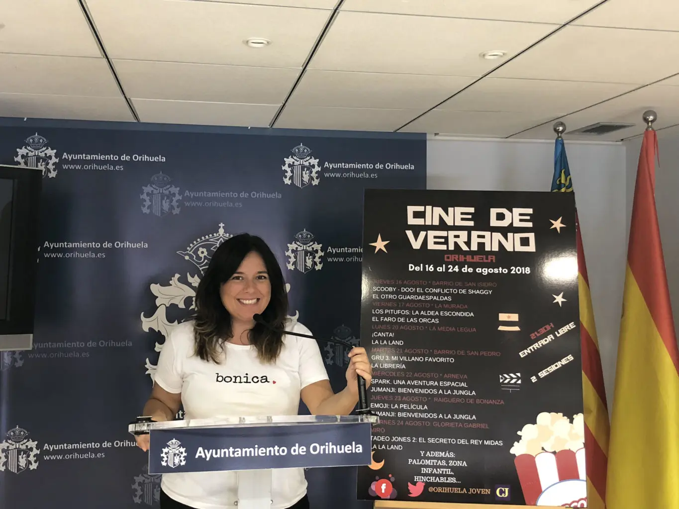 El cine de verano volverá a protagonizar las calurosas noches agosto en el municipio de Orihuela. La concejala de Juventud, Mar Ezcurra, ha presentado esta mañana el programa de proyecciones que comenzará este jueves 16 y se prolongará hasta el viernes 24 de agosto.