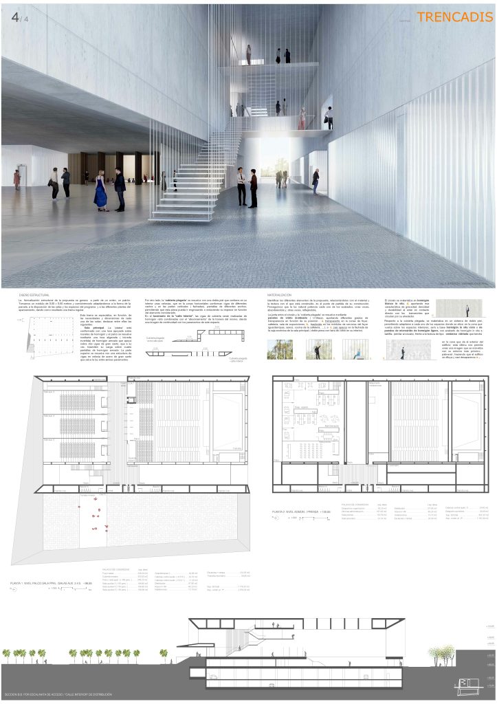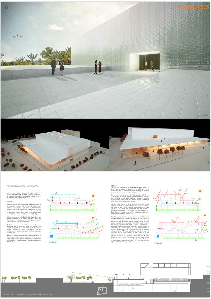 El anteproyecto presentado bajo el lema “Trencadís”, del estudio de arquitectura García Rodríguez Alcoba SLP, de Madrid, ha obtenido el primer premio del Concurso Internacional de Anteproyectos para el Palacio de Congresos de Elche. Fue impulsado por la Diputación de Alicante.