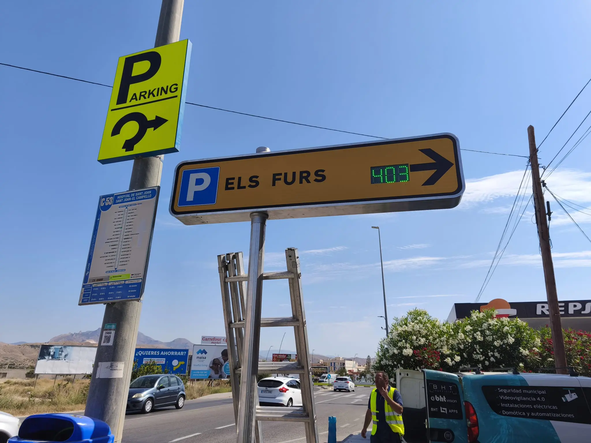 Ya se han instalado dos, a las que seguirán otras. El departamento de Tráfico del Ayuntamiento de El Campello, que dirige Rafa Galvañ, y de acuerdo a un proyecto de la Policía Local, ha comenzado la instalación de paneles informativos luminosos para que los visitantes conozcan en tiempo real las plazas vacantes en el parking público de Els Furs, que ofrece hasta 500 estacionamientos a escasos metros de la playa de Carrer la Mar.