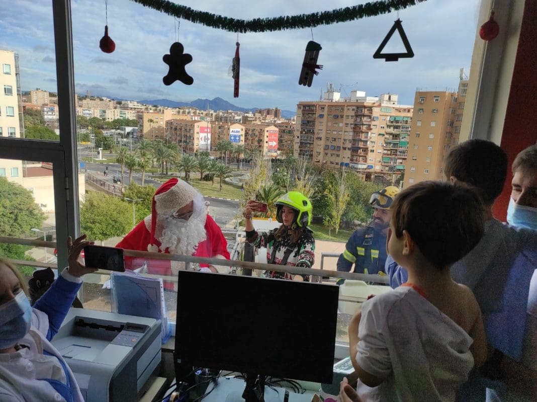 Papá Noel ha llegado esta mañana a la Unidad de Oncología Pediátrica del Hospital General Universitario Doctor Balmis con la ayuda de los Bomberos del Servicio de Prevención, Extinción de Incendios y Salvamento del Ayuntamiento de Alicante que han realizado su tradicional visita, para llevar la magia de la Navidad hasta donde se encuentran ingresados los niños y niñas haciéndoles llegar esta sorpresa.