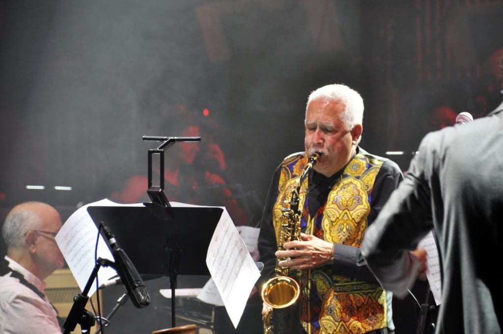 Bien. Súmenle a esta ecuación la intervención de uno de los saxofonistas más reconocidos de la actualidad, un músico con una trayectoria brillante y larguísima, que acapara multitud de premios, que ha colaborado con los artistas más diversos y que es un referente de primer orden en el jazz latino. Sí, estoy hablando de Paquito de Rivera, el invitado estrella esta noche en el Auditorio de Alicante, que con su despliegue instrumental y con su estilo inconfundible, nos ha ofrecido una velada intensa, mágica, sorprendente, que ha entusiasmado al público desde el minuto uno.